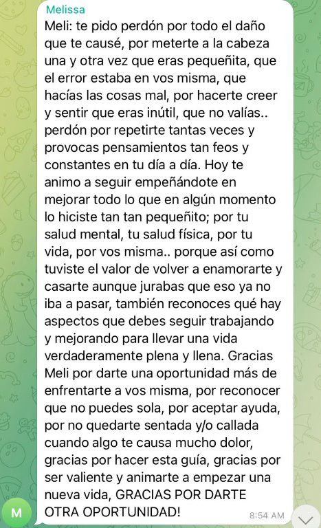 Es un libro digital de 74 páginas, donde vas a recorrer un camino de auto conocimiento y perdón contigo mismo(a).
